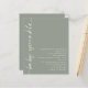Budget Rotated Script Sage Baby Shower Sprinkle. A budget price smaller 4.5 x 5.6” alternative on a 110gsm similar in thickness to a postcard. There is ONE per sheet. Contemporary style with Baby Sprinkle rotated and to the left hand side and easily personalise the rest of the text to your own details. You can change text and background colours if you so wish via the edit further option.