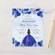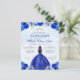 Budget Royal Blue Gold Floral Princess Tiara Crown Quinceañera Invitation