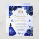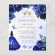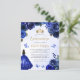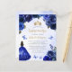 This lovely quinceañera invitation features a border of royal blue roses on a blue watercolor background. A gold tiara, a dark-haired girl in a royal blue princess dress and small blue butterflies decorate the text. The word "Quinceañera" and the name of the guest of honour appear in elegant gold-coloured handwriting script, with the remaining text in grey sans serif font. Add additional text on the back, along with a QR code to help your guests visit your quinceañera website and RSVP online.