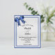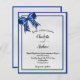 A modern, elegant and wedding invitation. Faux silver metallic looking background decorated with royal blue frames and bow. Personalise and add your names and wedding details. Black coloured letters.