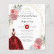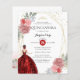Chic Ruby Red Floral Geometric Quinceañera Invitation