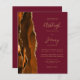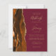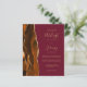 Save the cost of printing and mailing separate RSVP cards with this elegant modern all-in-one budget wedding invitation. The left-hand edge features a burnt orange and rust watercolor agate border trimmed with gold faux glitter. The customisable text combines gold-coloured handwriting, copperplate and italic fonts on a burgundy red background. The reverse side provides space for wedding details on a solid burgundy background, along with a QR code guests can scan to visit your website and RSVP.