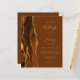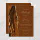 Save the cost of printing and mailing separate RSVP cards with this elegant modern all-in-one budget wedding invitation. The left-hand edge features a burnt orange and rust watercolor agate border trimmed with gold faux glitter. The customisable text combines gold-coloured handwriting, copperplate and italic fonts on a nutmeg brown background. The reverse side provides space for wedding details on a solid nutmeg brown background, along with a QR code guests can scan to visit your website and RSVP.