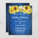 Budget Rustic vintage look blue denim jeans with sunflowers and daisies wedding invitation.