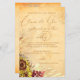 Boho floral elements on a rustic Tuscan stucco textured background. Corner arrangement of watercolor and inked sunflower motif is accented with pale golden floral tracery.. Modern trendy colours and golden sunflowers combine in this natural theme.