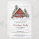Budget Rustic Cabin Christmas Party Invitation - Christmas party invitation features a rustic, country cabin surrounded by evergreen pine trees and is covered with snow. Background is whitewashed shiplap wood to complete the rustic aesthetic. All text is completely editable. Perfect for your corporate or personal holiday celebration. Invitation is part of a collection. *Please note that this is a budget option. If you prefer a thicker paper stock, please choose our flat card or postcard option. *