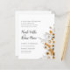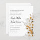 Card reverse to total white colour with space for additional information as rsvp, wedding website, registry wedding details and more and an illustration of botanical bouquet along the bottom.