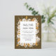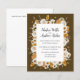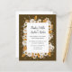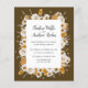 This design features an elegant floral wreath of Chamomile and Mimosa Flowers, and leaves in watercolor palette of ivory, white, yellow, bronze and brown with your wedding details displayed in an elegant combination of handwritten and capital letter over a chocolate brown background. Perfect for rustic celebration, or barn wedding with romantic vibes.