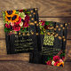 Rustic country wedding celebration and reception stylish affordable all in one RSVP and details QR code to website wedding invitation template on dark brown barn wood background featuring big yellow gold sunflowers and red burgundy roses bouquets, strings of twinkle lights, and a faux gold elegant typography script. +++++++++++++++ Easy to personalise with your details and your QR code (automatically generated with your link). ++++++++++++ The invitation is suitable for autumn fall outdoor garden backyard barn vintage rustic country weddings. ++++++++++ PLEASE READ THIS BEFORE PURCHASING! This is a budget affordable wedding card printed on a paper sheet (each sheet has one card). ++++ For the best rapport price-quality, our advice is to choose the Semi-Gloss paper type (it is thick enough to be used for stationery) ++++ If you need envelopes, choose the ENVELOPE OPTION. +++ Double-check all the information and spelling of your text because you will receive exactly what you see - no one else will check anything before printing. ++++ This card is designed for size 4.5" x 5.6". In the case you choose another size of the card and text goes outside page, everything needs to be fixed before adding the product to cart. Please ask Live Design Service for help.