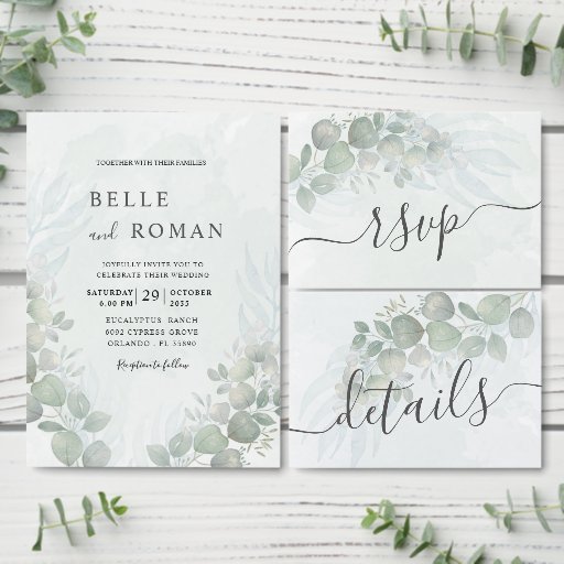Elegant sage green design for your perfect invitation. An original design featuring soft eucalyptus and co-ordinating greenery creates a stunning frame for you to add your personal details. All you need to do is click personalise and follow the instructions.
