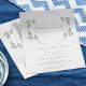 The chic wedding invitation design features a bouquet of watercolor eucalyptus greenery and an elegant sophisticated set of fonts. View the collection link on this page to see all of the matching items in this beautiful design. LOW BUDGET INVITATION FLYERS. *** PLEASE NOTE this budget option is a flyer (no envelopes included) hence the low price - The SATIN option is the thicker choice.