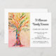 It is decorated with a brightly coloured mosaic tree on a rustic background.