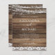 Budget Rustic Farmhouse String Lights Lace Wedding Invitations on Wood background - includes beautiful and elegant script typography with modern Country Farm House Sparkle for the special Wedding day celebration.
