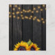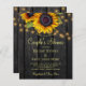 Rustic country wedding couple's shower stylish budget affordable invitation template on dark brown barn wood background featuring big yellow gold sunflowers bouquets, strings of twinkle lights, and a faux gold typography script. +++++++++++++++ Easy to personalise with your details! ++++++++++++ The invitation is suitable for summer or autumn fall outdoor garden backyard rustic farmhouse country couple's parties or barbecues. ++++++++++ PLEASE READ THIS BEFORE PURCHASING! This is a budget affordable wedding card printed on a paper sheet (each sheet has one card). ++++ For the best rapport price-quality, our advice is to choose the Semi-Gloss paper type (it is thick enough to be used for stationery) ++++ If you need envelopes, choose the ENVELOPE OPTION. +++ Double-check all the information and spelling of your text because you will receive exactly what you see - no one else will check anything before printing. ++++ This card is designed for size 4.5" x 5.6". In the case you choose another size of the card and text goes outside page, everything needs to be fixed before adding the product to cart. Please ask for help.