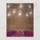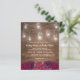 Budget rustic country wedding invitations featuring a wooden background, red burgundy marsala florals, mason jars with string lights and a elegant editable wedding template.