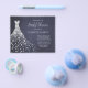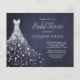 White shiny diamonds wedding dress on a dark navy blue chalkboard background making a modern elegant rustic inspired bridal shower invitation PAPER FLYER. +++++++++++++++ PLEASE READ THIS BEFORE PURCHASING! This is a budget affordable card printed on a FLYER. ++++ Please note that BUDGET PAPER IS THIN - You can upgrade to have this card printed on cardstock ++++ ENVELOPES NOT INCLUDED. +++ Double-check all the information and spelling of your text because you will receive exactly what you see - no one else will check anything before printing. ++++ This card is designed for size 4.5" x 5.6". In the case you choose another size of the card and text goes outside page, everything needs to be fixed before adding the product to cart. Please ask Live Design Service for help.