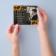 Elegant chic stylish all in one QR code and photo BUDGET wedding invitation PAPER FLYER template on dark brown barn wood featuring beautiful sunflowers bouquets, strings or twinkle lights, and a chic faux gold calligraphy script. ++++++++++++++ Easy to personalise with your details, QR CODE (automatically generated with your URL), and your engagement picture! +++++++++++ The invitation is suitable for elegant summer or autumn fall budget affordable rustic country barn weddings. ++++++++++++++++++++++ PLEASE READ THIS BEFORE PURCHASING! This is a budget affordable card printed on a FLYER. ++++ Please note that BUDGET PAPER IS THIN - You can upgrade to have this card printed on cardstock ++++ ENVELOPES NOT INCLUDED. +++ Double-check all the information and spelling of your text because you will receive exactly what you see - no one else will check anything before printing. ++++ This card is designed for size 4.5" x 5.6". In the case you choose another size of the card and text goes outside page, everything needs to be fixed before adding the product to cart. Please ask Live Design Service for help.