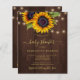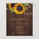 Rustic country chic affordable baby girl or boy shower party stylish invitation template on a brown barn wood background featuring a yellow gold sunflowers bouquet and trendy elegant faux gold calligraphy script.+++++++++++Easy to personalise with your details! You can choose to customise it further changing fonts and colours of lettering. +++++++++++ The invitation is suitable for summer or autumn fall outdoor garden, farmhouse, barn, backyard rustic country baby showers, gender reveal parties or baby sprinkles. ++++++++++ PLEASE READ THIS BEFORE PURCHASING! This is a budget affordable card printed on a paper sheet (each sheet has one card). ++++ For the best rapport price-quality, our advice is to choose the Semi-Gloss paper type (it is thick enough to be used for stationery) ++++ If you need envelopes, choose the ENVELOPE OPTION. +++ Double-check all the information and spelling of your text because you will receive exactly what you see - no one else will check anything before printing. ++++ This card is designed for size 4.5" x 5.6". In the case you choose another size of the card and text goes outside page, everything needs to be fixed before adding the product to cart. Please ask Live Design Service for help.