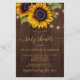 Rustic country chic affordable baby girl or boy shower party stylish invitation FLYER template on a brown barn wood background featuring a yellow gold sunflowers bouquet and trendy elegant faux gold calligraphy script.+++++++++++Easy to personalise with your details! You can choose to customise it further changing fonts and colours of lettering. +++++++++++ The invitation is suitable for summer or autumn fall outdoor garden, farmhouse, barn, backyard rustic country baby showers, gender reveal parties or baby sprinkles. +++++++++++++++ PLEASE READ THIS BEFORE PURCHASING! This is a budget affordable card printed on a FLYER. ++++ Please note that BUDGET PAPER IS THIN - You can upgrade to have this card printed on cardstock ++++ ENVELOPES NOT INCLUDED. +++ Double-check all the information and spelling of your text because you will receive exactly what you see - no one else will check anything before printing. ++++ This card is designed for size 4.5" x 5.6". In the case you choose another size of the card and text goes outside page, everything needs to be fixed before adding the product to cart. Please ask Live Design Service for help.