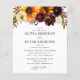 Modern Rustic Sunflower Rose Peony Burgundy Red Purple Floral Watercolor Autumn Fall Country Wedding Invitation