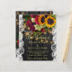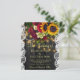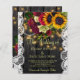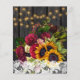 Rustic country vintage style wedding budget affordable invitation template on dark brown barn wood background featuring big yellow gold sunflowers and red burgundy roses bouquets, strings of twinkle lights, white lace borders, string of pearls, and a faux gold typography script. +++++++++++++++ Easy to personalise with your details! You can choose to customise it further changing fonts and colours of lettering. ++++++++++++ The invitation is suitable for autumn fall outdoor garden / backyard rustic country vintage traditional inspired weddings.
