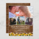 Affordable rustic wedding invitations featuring a country chic wooden background, 4 pictures of the engaged couple, bright yellow sunflowers, string lights, and a modern wedding template that is easy to personalise. PLEASE NOTE: These are budget paper sheets, they do not come with envelopes. However this design can be transfered to invitation cards which do come with envelopes.