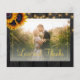 Rustic sunflowers and string lights on dark brown barn wood photo thank you elegant BUDGET affordable wedding FLYER with a chic gold typography script. +++++++++ Personalise with your names, photo and text! ++++++++++ Suitable for floral summer or autumn fall / garden backyard rustic country themed weddings. +++++++++++++++ PLEASE READ THIS BEFORE PURCHASING! This is a budget affordable card printed on a FLYER. ++++ Please note that BUDGET PAPER IS THIN - You can upgrade to have this card printed on cardstock ++++ ENVELOPES NOT INCLUDED. +++ Double-check all the information and spelling of your text because you will receive exactly what you see - no one else will check anything before printing. ++++ This card is designed for size 4.5" x 5.6". In the case you choose another size of the card and text goes outside page, everything needs to be fixed before adding the product to cart. Please ask Live Design Service for help.