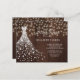 White shiny diamonds wedding dress on a dark brown barn wood background with strings of twinkle lights making a modern elegant rustic inspired bridal shower invitation. ++++++++++++ PLEASE READ THIS BEFORE PURCHASING! This is a budget affordable card printed on a paper sheet (each sheet has one card). ++++ For the best rapport price-quality, our advice is to choose the Semi-Gloss paper type (it is thick enough to be used for stationery) ++++ If you need envelopes, choose the ENVELOPE OPTION. +++ Double-check all the information and spelling of your text because you will receive exactly what you see - no one else will check anything before printing. ++++ This card is designed for size 4.5" x 5.6". In the case you choose another size of the card and text goes outside page, everything needs to be fixed before adding the product to cart. Please ask Live Design Service for help.