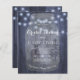 Rustic wonderland country style bridal shower party stylish budget affordable invitation template on dark midnight navy blue barn wood background featuring a big mason jar with reindeer, pine trees and strings of white twinkle lights.+++++++++++++ Personalise with your details! +++++++++++ The invitation is suitable for winter wonderland night / mountains / rustic country bridal showers / brunch /luncheon parties. ++++++++++ PLEASE READ THIS BEFORE PURCHASING! This is a budget affordable wedding card printed on a paper sheet (each sheet has one card). ++++ For the best rapport price-quality, our advice is to choose the Semi-Gloss paper type (it is thick enough to be used for stationery) ++++ If you need envelopes, choose the ENVELOPE OPTION. +++ Double-check all the information and spelling of your text because you will receive exactly what you see - no one else will check anything before printing. ++++ This card is designed for size 4.5" x 5.6". In the case you choose another size of the card and text goes outside page, everything needs to be fixed before adding the product to cart. Please ask Live Design Service for help.
