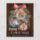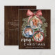 Add your own photos to this unique rustic elegant BUDGET holiday card, on cheaper cardstock and a slightly smaller size, to help you save money without sacrificing design quality. The easy to use photo templates are inside Christmas ornaments hanging from pine sprigs with a bow on top. There is a rustic wood background on front and back, and the personalised Christmas message on the back can easily be changed or removed. For additional matching products or design questions, please contact me through Zazzle Chat.