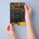 Beautiful rusty orange, terracotta, and dark burgundy autumn fall flowers and pumpkin borders with strings of golden twinkle lights over a dark brown barn wood background making a charming Thanksgiving Friendsgiving dinner low budget invitation printed on a flyer (advertising type of paper suitable for folded mailings) with a trendy handwriting gold typography script. +++++++++ Easy to personalise with your details! Suitable for traditional rustic country farmhouse family and friends gatherings. ++++++++++++++++++++++ PLEASE READ THIS BEFORE PURCHASING! This is a cheap budget invitation printed on a PAPER FLYER and suitable for folded mailings +++ Please note that BUDGET PAPER IS THIN - You can upgrade to have it printed on cardstock ++++ ENVELOPES NOT INCLUDED. You can upgrade to a cardstock version.