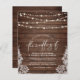 A classic vintage country theme in a modern style! This design features a rustic wood background with string lights at the top and beautiful, delicate and vintage lace in the bottom corners. The text appears in the middle with "the wedding of" in script lettering to add that extra elegant touch! Perfect for outdoor weddings in spring, summer, or fall. Cards reverse to rustic wooden background. Customize this design by clicking the "Personalize" button and typing into the text boxes. As part of the budget selection on Zazzle, this sheet isn't a standard invite size or paper quality. If you want this design on an invitation card you can find it in our store or use the Zazzle Make Machine to transfer it onto the product of your choice. Don't forget to check out the wide range of paper sizes, textures, and shapes that Zazzle has to offer! Matching items available in our store.
