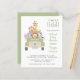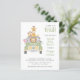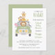 Cute budget-friendly baby boy virtual shower invitation featuring an illustration of baby zoo animals (lion, elephant, zebra, monkey and giraffe) piled into a safari vehicle and "It's About to Get Wild" in fun typography, and "Baby Shower" and the mother's name in coordinating army green script. You can easily personalise the virtual shower details, change the "It’s a Boy!" text on the vehicle, and add the shower date on the license plate, or leave blank.
