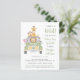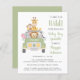 Cute budget-friendly baby sprinkle invitation featuring an illustration of baby zoo animals (lion, elephant, zebra, monkey and giraffe) piled into a safari vehicle and "It's About to Get Wild" in fun typography, and "Baby Shower" and the mother's name in coordinating army green script. You can easily personalise the shower details, change the "It’s a Boy!" text on the vehicle, and add the shower date on the license plate, or leave blank.