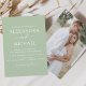 Budget Sage Green Wedding Spring or Summer Photo on Back Wedding Invitations - includes beautiful and elegant script typography with a modern simple and classic colour for the special Wedding day celebration.