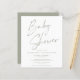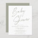 BUDGET Sage Olive Green Modern Simple Handwritten Script Baby Shower Invitation featuring our chic handwritten typography and your custom details. Baby showers are all about the mum-to-be and her baby on the way. So treat her to a chic, budget friendly, and handmade invitation with our new Simple Handwritten Script design. Choose a colour & typeface that reflects the couple's style and customise it with your details. Perfect for your modern, boho, rustic, or chic affair. A great addition to your shower, whether it is for a baby girl, a baby boy, or gender neutral. **Our BUDGET paper is smaller and more delicate, but still beautiful!** For a comparison of paper types, please watch our video here: https://youtu.be/G0F9Am5HPD4 If you need assistance or matching items, please contact us at cedarandstring@gmail.com.