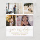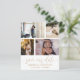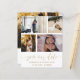 Cute save our date announcement. This template features space for 4 of your favourite couples photos in white with cool hand written calligraphy in gold. Easy to edit with your own unique details.
