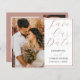 Elegant save the date announcement is prefect to get your wedding plans in motion. It features a photo template and large 'save the date' typography in rose gold on a white background. Customise with your own detials.