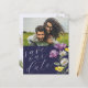 This elegant 'save the date' announcement is prefect to get your wedding plans in motion. It features a photo template and large typography in pale lilac on a dark purple background. Complementing your photo is a delicate bunch of wild flowers in purple white and yellow. Customise with your own detials. Please see other items in this unique and original collection.