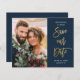 A modern, clean photo save the date announcement featuring calligraphy script save our date message.