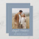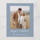 Budget Personalise this Dusty Blue and White One Photo Simple and Elegant Double Sided Save The Date Invitation with your message and details. This chic invitation includes modern and elegant stylish handwritten script typography for the special Wedding to Be celebration.