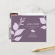This budget wedding save the date postcard features minimalist lilac leaves with the bride and grooms details in white over a dusty plum purple background. The simple card reverses to include your couple's photo and space to write in the recipients address. To see the complete modern wedding stationery line visit www.zazzle.com/dotellabelle