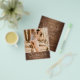 Chic script boho photo save the date flyer with your names, wedding date, location and wedding website in white elegant handwritten script calligraphy and modern typography on a rustic barn wood background. Simply add your personal details and favourite photo! Exclusively designed for you by Happy Dolphin Studio. If you need any help or matching products, please contact us through our store chat. We're happy to help you make your wedding the most beautiful day!
