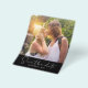 Chic script boho photo save the date flyer with your names, wedding date, location and wedding website in white elegant handwritten script calligraphy and modern typography on a black background. Simply add your personal details and favourite photo! Exclusively designed for you by Happy Dolphin Studio. If you need any help or matching products, please contact us through our store chat. We're happy to help you make your wedding the most beautiful day!