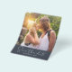 Chic script boho photo save the date flyer with your names, wedding date, location and wedding website in white elegant handwritten script calligraphy and modern typography on a dark blue background. Simply add your personal details and favourite photo! Exclusively designed for you by Happy Dolphin Studio. If you need any help or matching products, please contact us through our store chat. We're happy to help you make your wedding the most beautiful day!