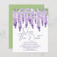 Budget Save The Date Watercolor Wisteria Lilac Wedding Save The Date Invitations features elegant watercolor wisteria flowers in soft lilac, lavender and purple with green leaves on a white background with your Save The Date information below. Personalise by editing the text in the text boxes provided. Designed for you by ©Evco Studio www.zazzle.com/store/evcostudio