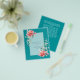 Modern wedding save the dates with a watercolor white roses and green leaves theme.