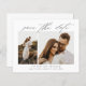 An elegant script 2 photo save the date with horizontal photo and minimal text. Click edit to customise this design.