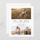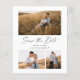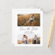 Budget Script 3 Photo Wedding Save the Date card. The back includes additional details. Click the edit button to customise this design with your photos and wedding details.