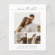 A Budget Elegant Script 3 Photo Wedding Save the Date Card featuring a simple modern design with photo collage on the front. The back has text for additional details. Click the personalise button to customise this design with your photos and details.